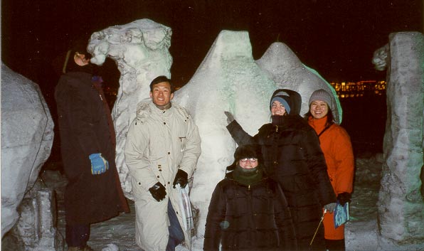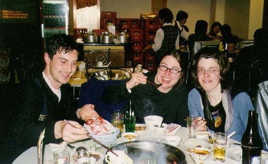 Two weeks with FriendsI left Shanghai by train on the 4th of February, after an excellent two weeks with Michelle, Alexa and Pascal, friends who were game to come to China during the 'dead' period over Chinese New Year. Furthermore they were willing to agree to my plan to spend the "Spring Festival" itself in Harbin, Heilongjiang province (Manchuria), which is the coldest part of China. So after a couple of mandatory days in Beijing (Great Wall, opera, foot massages, roast duck, Forbidden City, etc) we took an overnight train to Harbin, arriving in relatively mild morning temparatures of about minus 15 degrees centigrade. We celebrated the arrival of the new lunar year that evening with Catherine (Jing Yuan Yuan is her Chinese name), a Chinese fellow-BLCU student who comes from Harbin, and her parents. Since we were in town her father cooked a special dinner for us (including chicken claws, and 1000-year old eggs which are black potassium jelly, essentially) to share with them (making us eat most of it) rather than go to her grandmother's home as they would otherwise have done. At around 11.30 pm we added to Harbin's noise-level by lighting rounds of firecrackers in the stairwell and hanging them out the window, and at midnight we ate piles of jiao zi (steamed pork dumpling, rather like large ravioli, eaten with vinegar) before heading back to our hotel. The next day was spent testing ourselves against the cold, marvelling at the hundreds of ice sculptures in the city's park, and in the evening going to the more commercial 'snow and ice world' which is actually on the frozen river! It is a huge show, including activities like 'climb this wall of ice with no safety net', 'ride this ice chariot', and more japes - I did go skating on a bit of river - rather bumpy, but a lot of fun! and we enjoyed seeing our eyelashes freeze, our hats go from black to white with frost, and our noses and cheeks begin to look like Father Christmas's. So he is not just on the whisky, as we weren't drinking a drop. From Harbin we visited numerous spots on our way to Shanghai - including Xi'an (terracotta warriors were just as impressive the second time round, and the Great Mosque was even nicer under snow than it had been in the first flowers of spring); Luoyang (to the Longmen Buddhist caves nearby); Shaolin Temple (of fighting monks fame) and Kaifeng, which was my favourite. Kaifeng was capital of China under (I think) the southern Song dynasty in around the 10th century AD, and it has been far less modernised than most cities in eastern China. It has a superb nightmarket, with local specialties as well as other Chinese street food including Uighur lamb kebabs that were, as Alexa could not stop saying, 'not too spicy, not too salty, herby and very tender' (or something along those lines, sorry A I have forgotten your more roll-off-the-tongue phrase....) Shanghai provided a stark contrast to Kaifeng when we got there though (by plane - buying train tickets as people were returning to work was proving just far too stressful) - reminding us all of New York City! After a day buying big in silk in Hangzhou, Alexa and Pascal went back to Beijing to fly home from there, Michelle and I got our hair done, and Nick Playoust arrived (having fortuitously been just 'close by' in Hong Kong). Michelle's last night in China was spent in a very a la mode manner - in a karaoke parlour! We were taken there by my hairdresser from the day before, after first being taken to a tasty local meal. Karaoke in China is not something you do to further embarrass yourself when drunk, it is a serious pastime for the modern youth. We had a little booth to ourselves, fairly well sound-proofed (I hope), and I warmed up proceedings with one of the two Chinese pop songs that I know. Luckily there were several English-language songs in the system too, so Michelle was rapidly able to come into her own, and even Nick I don't think would deny he had fun! Fu Ke Li, the hairdresser, couldn't drag us away, even at the Saturday night rates of 60 RMB (five pounds fifty) an hour for the booth, and we were there till 1.30 am! I am not sure what he made of us, especially as Michelle wanted to get curious outsiders watching foreigners prancing around to come in and join the fun..... Anyway, that was Shanghai. As you can imagine the thirty-hour train west to Lanzhou provided well needed respite. And why has my experience since been so Buddhist and Tibetan?