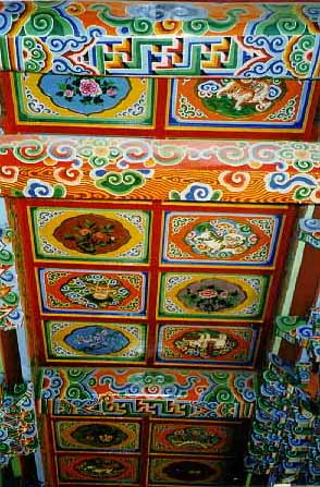 | The tiles on this page are from a painted wall inside the prayer hall at one of the Buddhist monasteries above Jianzha. |Click here to view the original photo| | |||||